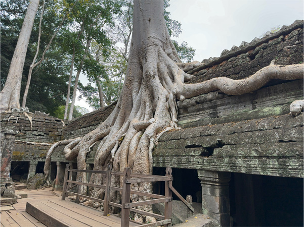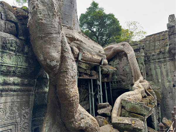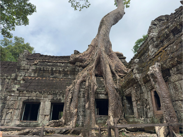 アンコール・トムの東の城壁に開いた門の一つ、「勝利の門」を出てタ・プロームへ。樹木の太い根っこが絡んだ遺跡としても有名だ。