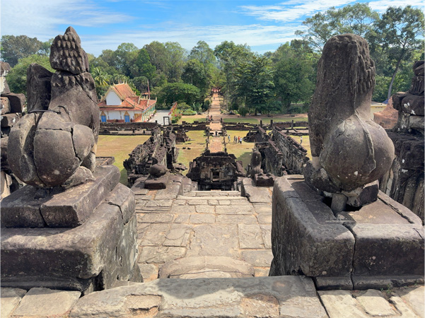 | ↑最上段から見下ろす。後ろ姿の2体の石像はライオンで、「シンハ」と呼ばれる神獣。 |