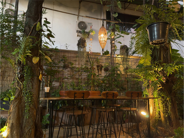 壁や天井の観葉植物に囲まれて、クメール料理の夕ご飯をいただいた。