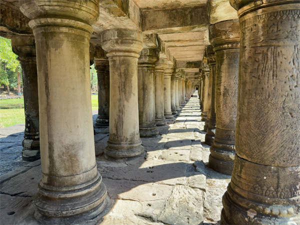 | ↑バプーオンに向かって伸びる参道の下。3列の橋脚が整然と並ぶ。フランスの研究機関によって修復されたそうだ。 |