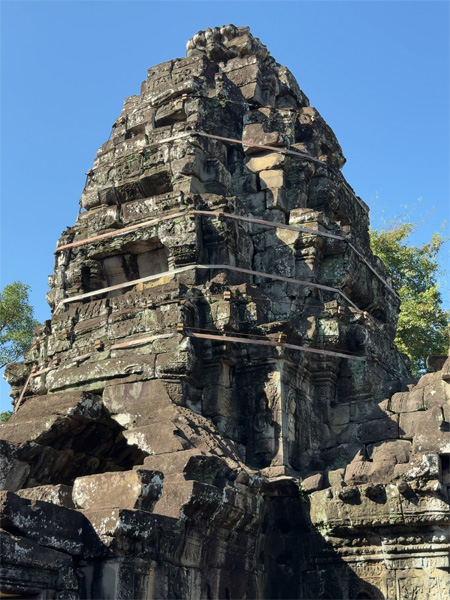 | ↑金属のバンドで補強されたバンテアイ・クデイの仏塔。 |