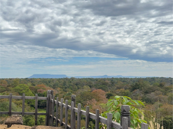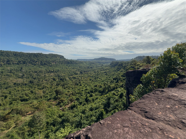 シェムリアップの町から北東へ、直線距離にして約40km。プノン・クーレン(クーレン山)を観光した。東西方向に30km続く山岳地帯で、平原の真ん中にどぉんと横たわっているため、空港や郊外の遺跡に向かう途中、右端の尖った山容がよく見える。アンコール王朝発祥の地として、カンボジアの人たちにとって重要な意味を持つ山だそうだ。また、豊かな自然によってクーレン国立公園にも指定され、人気の行楽地にもなっている。外国人は入園料$20が必要だ(3,180円)。 上の写真は昨年2024年12月、コー・ケー遺跡のてっぺんから撮ったプノン・クーレンだ。コー・ケー遺跡からだとプノン・クーレンは南西の方角に見えるため、この写真では向かって左端が尖っている。上述したような右端の尖った山の写真を探したが、どこからでもよく見える山で特にカメラを向けなかったせいで、右端の尖ったプノン・クーレンの写真が1枚もないことに気がついた。