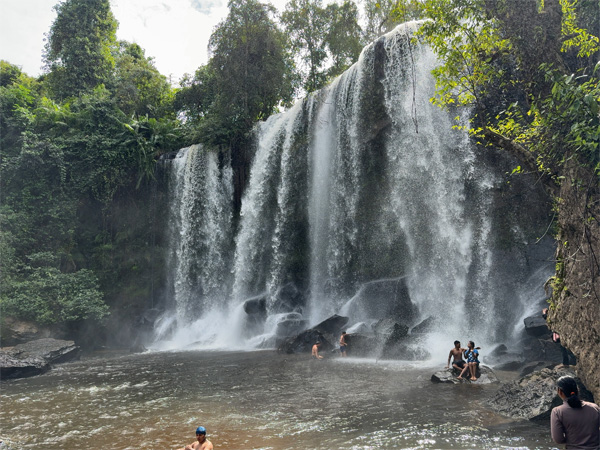 千のリンガを流れた川の水は、2本の大きな滝に行き着く。乾季と雨季とでは水量の違いから幅も高さも異なり、ガイドさんによれば、乾季に入ったばかりのこの時期は水量が適度で、流れ落ちる水と合間に見える岩の色のバランスが良く、撮影にはもってこいだそうだ。