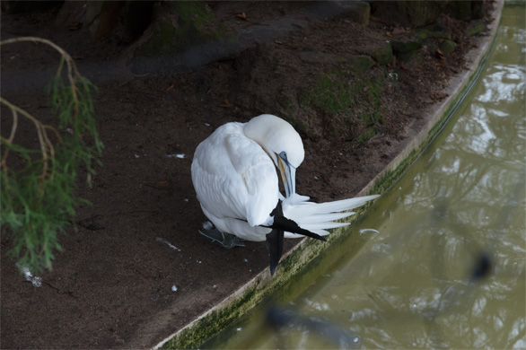 | ↑ラクダ、ウシ、シカなどがいるエリアは、見学路とは幅3mほどの水路と植え込みで仕切られているに過ぎない。「ぴょんとひとっ飛び」はムリだとしても、「泳いで渡る」ならできそうな動物もいるけれど、脱走したりしないのかな。 |