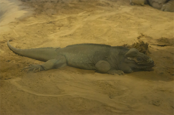 小さなサルがすばしこく枝を伝い、リスの一団が足元を駆け抜ける。幹につかまるトカゲから天井に目を移すと、コウモリがぶら下がっている。小さな動物ばかりで、姿を見せたと思ってもすぐに葉っぱの影に隠れてしまうが、この展示館には柵もガラス板もないので、近くに何かいる気配が感じられておもしろい。