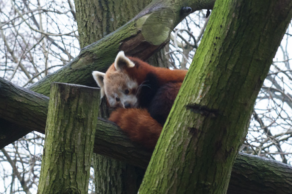 | ↑レッサーパンダ。ちょろっと顔を上げただけ。ふかふか尻尾が恋しい季節。 |