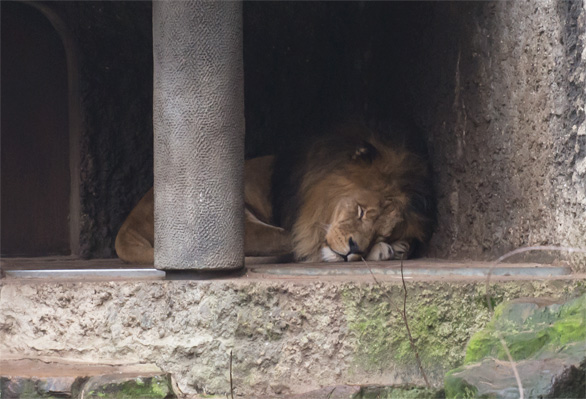 | ↑あ〜、さむ。百獣の王、やる気ナシ。 |