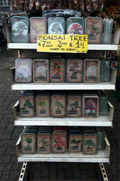 | | ↑盆栽は海外でも人気があるってホントだ。英語で「育てやすい」と書いてあるけれど、ちょきちょき手入れは難しいのでは? |