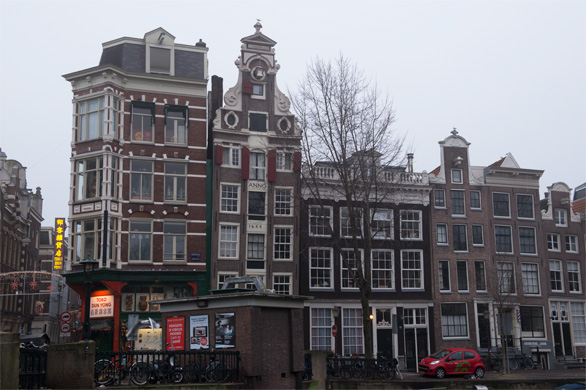 17世紀の古い建物が立ち並ぶ運河沿いの一帯は、ユネスコの世界遺産に登録されている。時を経たとはいえ、壁のレンガや塗装などを見ると、どの建物もきちんと手入れされ続けてきたことがよくわかる。ただ、外装や内装は修繕できても、建物そのものの傾きはそう簡単には直せないのだろう。