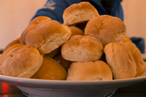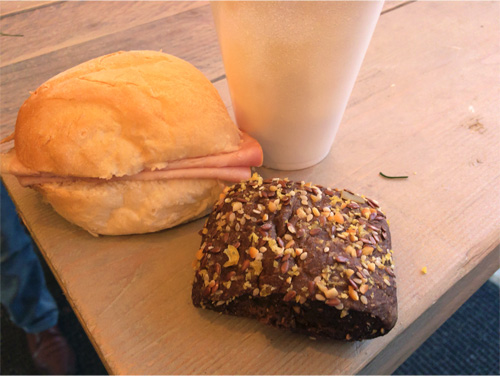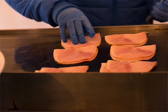 | ↑ハムを焼いて、上の写真のバンズに挟んでくれる。 |