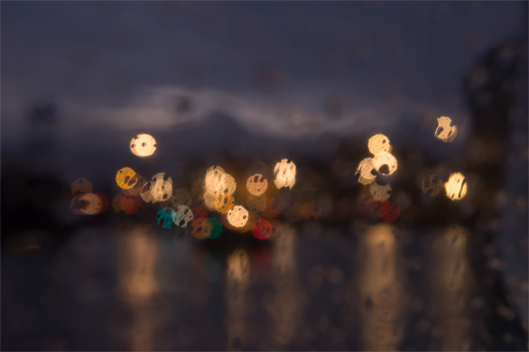食事の前は夕焼け空だったのに、いきなり曇って乗船と同時に雨が降ってきた。係員さんが船の上によじ登ってきれいに拭いてくれた窓ガラスに、水滴がたくさんついてしまった。