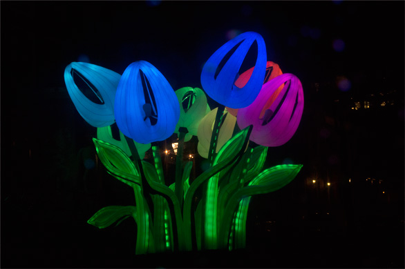 | ↑光のアート'Flower Strip'。七色に変化する。 |