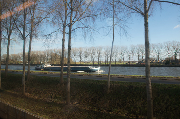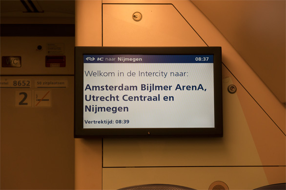 | ↑8時39分発の列車に乗った。ユトレヒト中央駅まで2駅、25分で到着する。インターシティの2等車の車内で撮影。 |