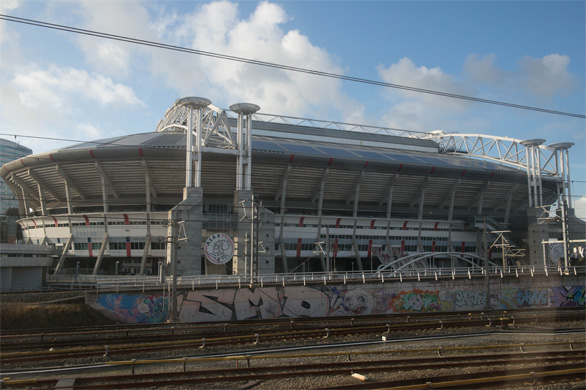 | ↑アムステルダム南駅から1と駅目にあるアムステルダム・アリーナ。欧州の強豪サッカークラブ「アヤックス・アムステルダム」のホームだ。 |