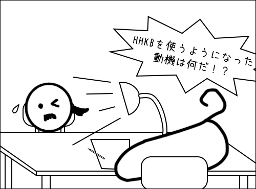 私「HHKBを使い始めたのはいつ?」 ・・・このように、口が重いためインタビューは思うように進まない。先を急ごう。 私(額に青筋を立てながら)「奥方からたびたび緊縮財政のクギを刺されながら、今回、3万円もするキーボードを買ったけれど、HHKBのどんなところにホレ込んだのかな?」