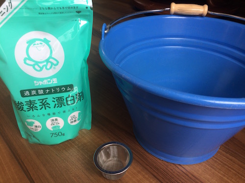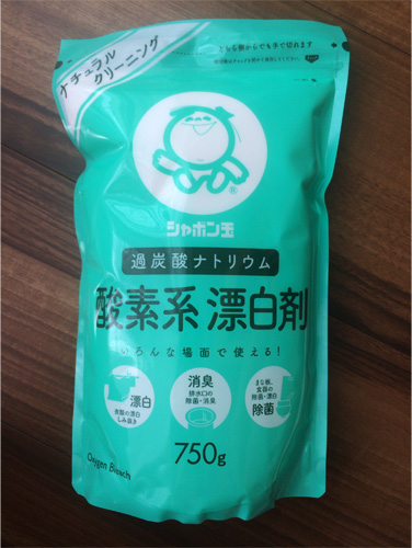去年まで、塩素系漂白剤を含む洗濯槽専用のクリーナーを使っていたが、臭いが苦痛だった。今年は酸素系漂白剤のクリーナーという選択肢もあったが、長い間、台所用に使っている、たっぷり入ってお値段も手頃な酸素系漂白剤にしてみた(次の写真)。分量も手順も専用クリーナーの説明書をお手本にし、てきとーに我流を混ぜた。浮き出た汚れを見る限り、洗剤としてきちんと機能しているようなので、あしたの洗濯で特に問題がなければ、来年以降もこの方法でいこうと思う。