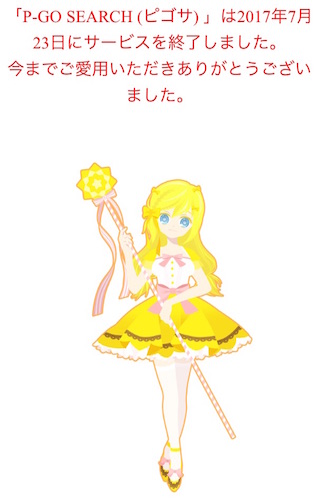 ポケモンGOをプレイするまでポケモンは遠い遠い存在だったが、絵としぐさの愛らしさに、トシ甲斐もなく「GO」に夢中になった。そして、「GO」は、カキのように家に閉じこもっていたひっきーオバサンを、炎天下や北風の戸外に引っ張り出してくれた恩人でもある。健康上の理由からできるだけたくさん歩かなくてはならないので、私がトレーナーではなく、「GO」が私のトレーナーと言えるだろう。 その私の「GO」プレイを強力にサポートしてくれたのが、ピゴサだった。 私はジムやレイドバトルには参加しない。ポケモンのトレーナーではなく、コレクターだ。出現が確認されているポケモンはできるだけ集めたいし、CPの高い強いコばかりでなく、20未満のいぢめないでちゃんや、外見に雌雄の別のあるコでもコレクションを組んでいる。外国のポケモンももちろん集めたい。私はコレクターとしての視点でしか見られないが、「GO」のいい点は公平性だと感じている。出現したポケモンは欲しい人全員のもので、数に限りがあるわけではないので、奪い合いにならない。ピゴサからポケモン出現の通知が届くと、まるで自分のためにそのポケモンが現れてくれたような気分になって、そそくさと支度してiPhone片手にテクテク歩いて行く。私(と家族)の移動手段はもっぱら徒歩なので探査範囲が限られるし、ココはポケモンの聖地でも名所でもないので、レアなコなんてまずお目にかかれない。欲しかったポケモンが近所に出たことを教えてくれるピゴサは、本当に心強い相棒だった。