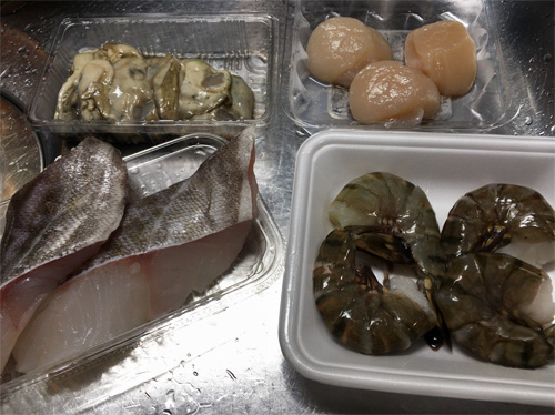 スープを煮始めて15分くらい経ったら、手早く魚介類の下ごしらえをする。今回の材料では、