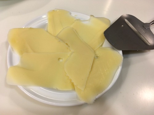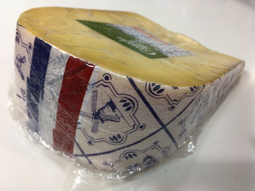 Dutch Helo's Gouda Mildという若いチーズで、「4〜6週間熟成」と書いてある。朝ご飯のサンドイッチ用にスライサーで薄くそぎ、残りをおつまみサイズにカットして、大部分は冷凍保存した。ゴーダは少し空気に触れるとよりおいしくなる(ような気がする)ので、保存の問題さえ解決できれば全部スライスにしたいところだ。