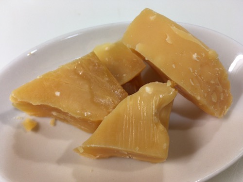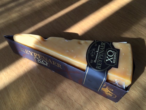 2年半熟成のReypenaer XO。結晶のシャリシャリ感が心地いい。この結晶、塩にしてはあまりしょっぱくないので何だろうと思って調べたら、アミノ酸、つまり、うまみ成分の塊なのだそうだ。おとうさんがこのチーズのファンで、これまで何度か買っているが、Reypenaerを何と発音するのかいまだにわからない。グーグル翻訳の音声では「ライプナー」と聞こえる。