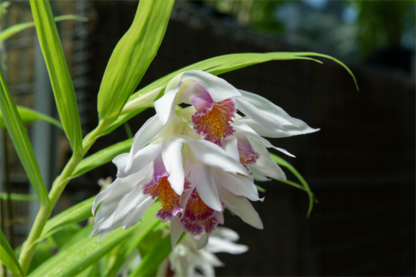 | ↑大温室のところどころに珍しいランが展示されている。これはパフィオペディルム属のランで、絶滅の危険が迫っている生き物として、「ワシントン条約附属書I」に掲載されているそうだ。 |