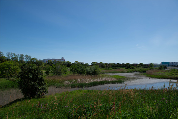 | ↑野鳥公園の南隣は、東京都中央卸売市場大田市場。 |