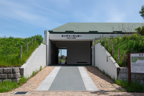 ネイチャーセンターは「潮入りの池」に面した施設だ。1階から3階は「潮入りの池」を見渡す広い観察ルームで、干潟の自然を中心に据えた展示もある。地下1階は戸外に向かって見学用の通路が設けられ、干潟を間近に眺めることができる。