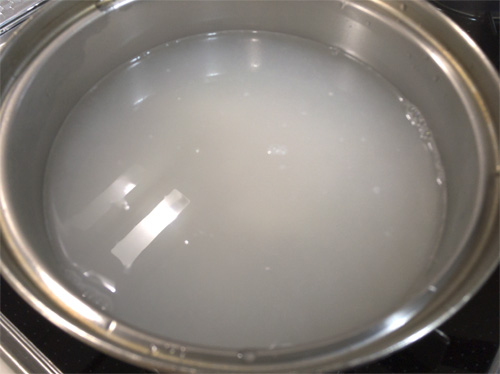 3. お湯が沸いたら鍋に入れる。10分間ほどそのままにして酒粕をふやかす。