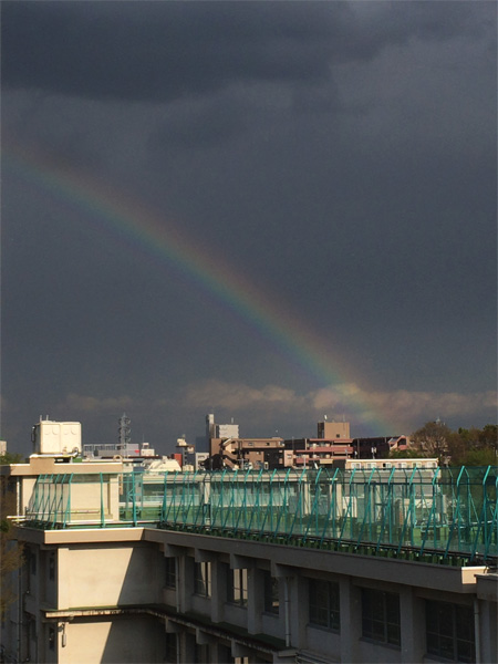 いつの間にか雨は上がり、黒々とした東の空を背景に鮮やかな虹がかかった。コロナ禍の嵐も去って、平穏の虹を見上げる日が来てほしいと願うばかりだ。