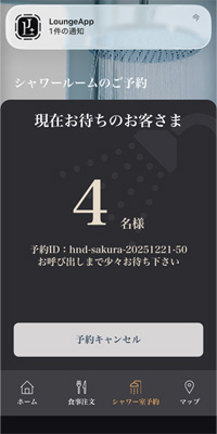 ![]() JAL国際線サクララウンジでシャワー室をお借りした 昨年暮れ、日本航空を利用してカンボジアのシェムリアップへ出かけた。深夜発の便だったため、夕方のちょうどいい時間にシャワーを使うことができ、ありがたかった。羽田空港のJAL国際線サクララウンジの一角にあるシャワー室で、ラウンジにチェックインしたあとアプリLoungeAppから予約した(次の画像)。5番目だったが、着席して10分ほどで利用可能の通知が届いた。