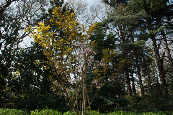 現時点では、ムラサキザクラ(紫桜)として育てられている。近づくとさほどでもないが、遠目には名前の通り紫色に見える。
