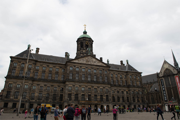 | ↑アムステルダムで一番にぎやかな場所、ダム広場。13世紀、アムスルテル川のこの場所にダムが築かれたことから、一帯が「アムステルダム」と呼ばれるようになったそうだ。 |