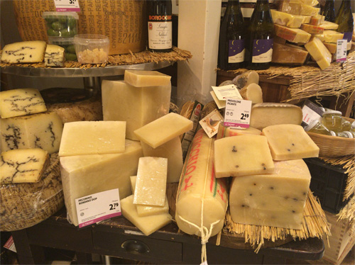 | ↑店員さんが真空パックしてくれたチーズ。帰宅して冷蔵庫に入れようとしたら、内側の包装紙に英語で何か書いてあるのに気がついた。チーズの説明だった。店員さん、ありがとう!店内の写真撮影も快く許してくださって、おかげさまで今回もいい思い出ができた。 |