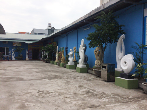 ↑行きと帰りに1回ずつ、それぞれ20分間のお手洗い休憩があり、大きな土産物屋さんに立ち寄る。行きと帰りとでは場所が異なり、写真は行きに寄ったお店。この地域では石彫刻がさかんなのか、行きのお店も帰りのお店も彫刻がたくさん展示してあった。お手洗いは広くて手入れが行き届き、気持ちよく利用できた。 |