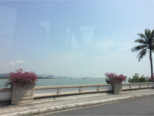 朝6時45分、送迎車がホテルに迎えに来た。ハノイ旧市街の他のホテルに寄って同じツアーのお客さん6人を集め、ハロン湾へと向かった。片道4時間の自動車の旅だ。