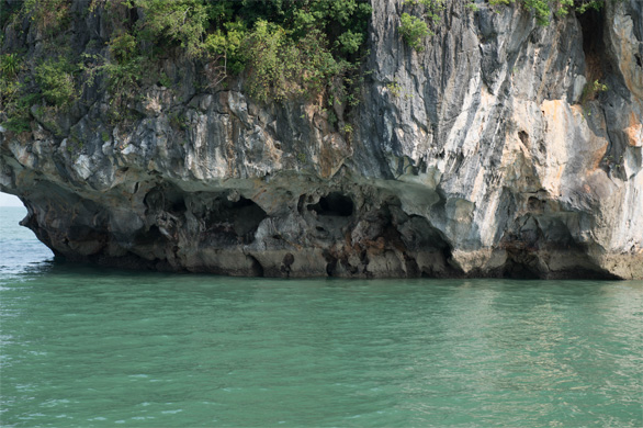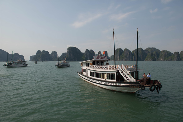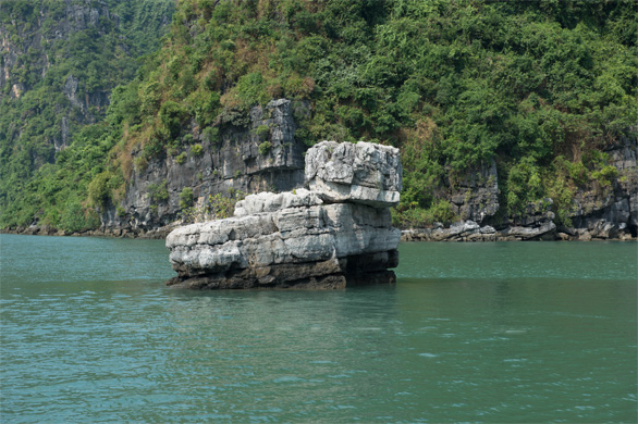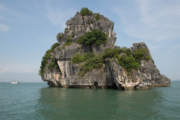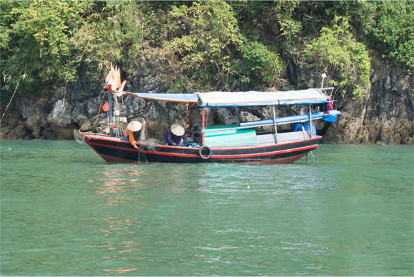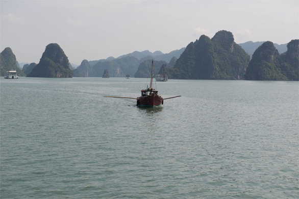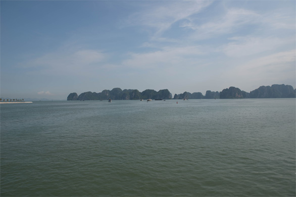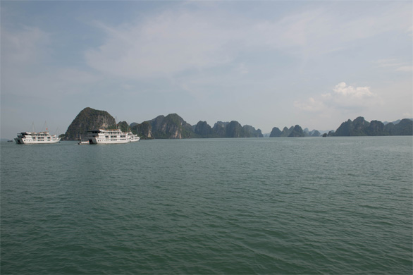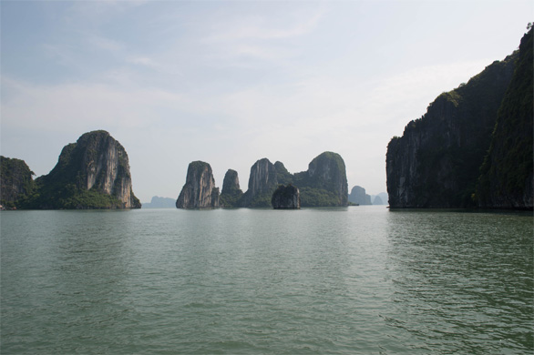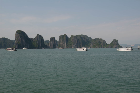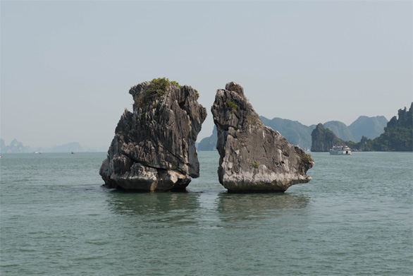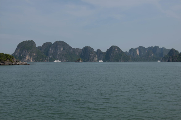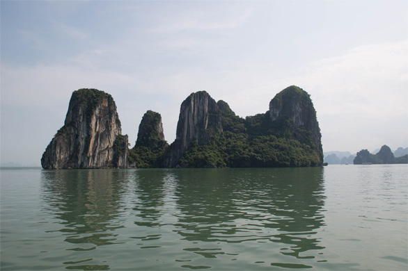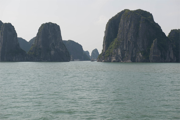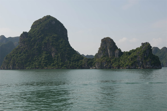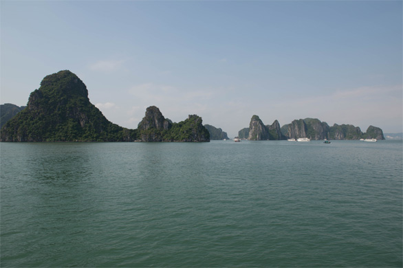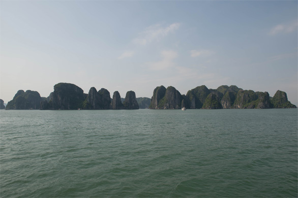 ↑トゥアンチャウ島の桟橋を離れ、南へ。船はのこぎり頭の島々を目指す。