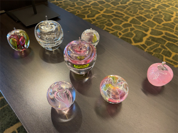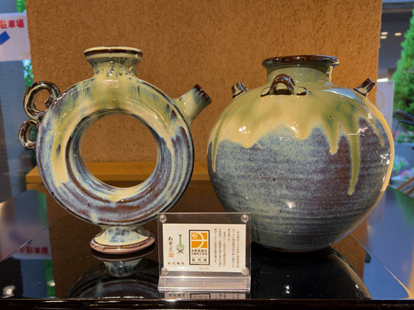 | ↑長野市南、松代の焼き物「松代焼」。ロビーには県内各地の工芸品が飾られている。 |
