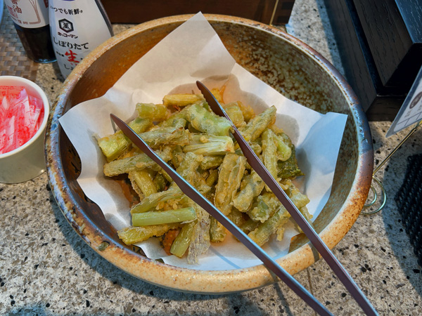 | ↑信州サーモンの胡麻和えに、一目惚れならぬ「ひと口惚れ」。「信州サーモン」は長野県水産試験場が長い年月をかけて開発したマスの品種だそうだ。 |
