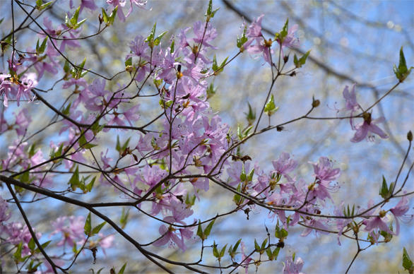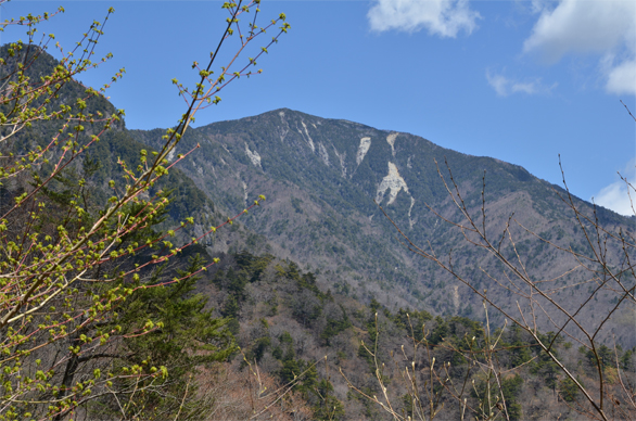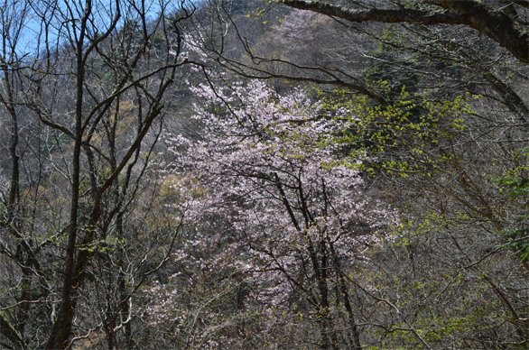 早春の西沢渓谷 今年のゴールデンウィークは全国的に気温が低く、山梨県も例外ではないそうだ。2、3日前、秩父へと続く峠では雪が降ったと、タクシーの運転手さんが珍しそうに話していた。ほどなくして、正面の高い山のてっぺんが霧氷で白く輝いているのが見えた。 午前6時半、朝日に照らされた峰を眺めながら渓谷に入った。国道脇の気温表示は摂氏1度だったのに、さほど寒さを感じない。氷も雪も見えないが、標高の高い所では道の脇に雪の塊が残っていた。 山は新緑というにはまだ早く、ようやく芽吹きが始まったばかりだった。黄緑色、萌黄色、オレンジ色、ピンク・・・若葉なのか、それとも何か薄い殻なのかわからないが、盛夏の緑が信じられないくらい、どの芽も淡い。