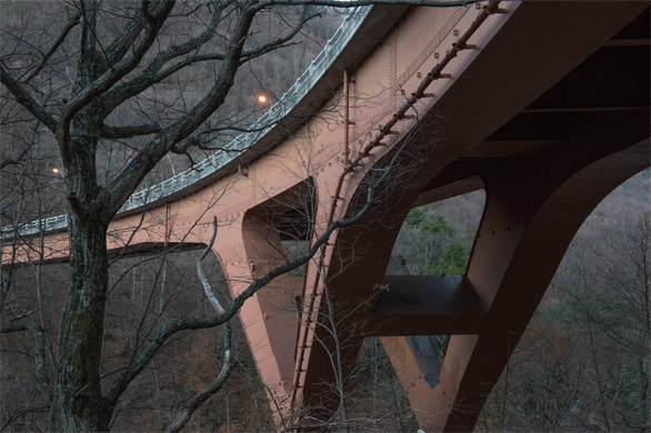 | ↑川面のはるか上にかかる、山梨県と埼玉県を結ぶ国道140号線の橋。 |