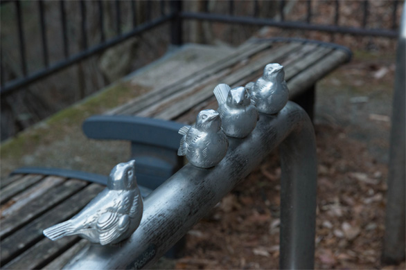 | ↑柵の上の小鳥のオブジェ。ハイキングコースの始まるこの地点から先は、一般の車両は入ることができない。 |