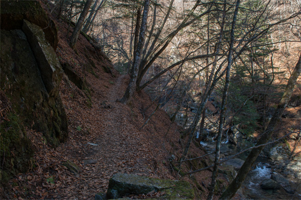 西沢渓谷で最も有名な滝、七ツ釜五段の滝(ななつがま・ごだんのたき)を経て、渓流沿いの山道の終点を目指した。