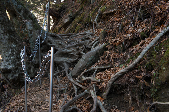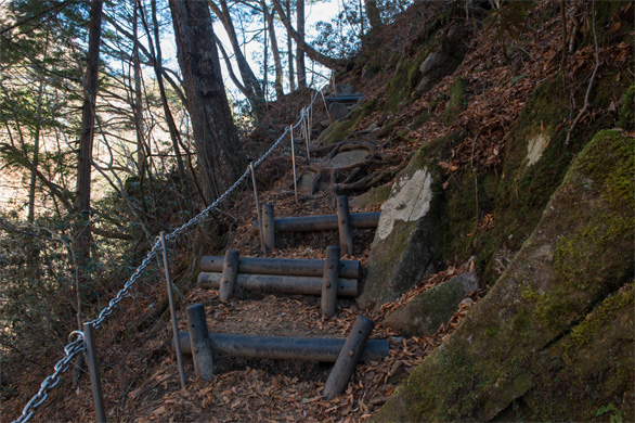 | ↑天然の根っこ階段。西沢渓谷の最後の試練が始まった。 |