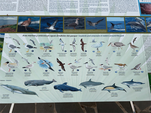 | ↑パルメトゥムで見られる鳥や近海に棲むクジラの案内板 |