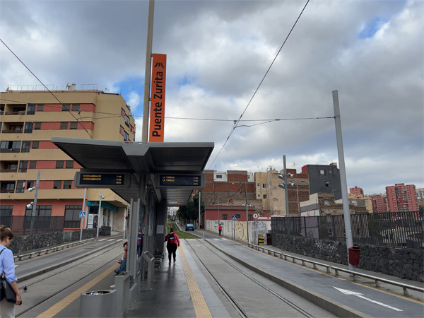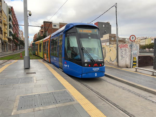 | ↑路面電車「トランビア・デ・テネリフェ」。ホテル最寄りのフンダシオン駅近く。 |