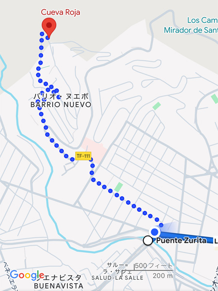 今日のお洗濯は午後にすることにして、さて、それまで何をしようとGoogle Mapをのぞいたら、ホテルからあまり遠くない所に洞窟を見つけた。「赤い洞窟」を意味する「クエバ・ロハ」という地名が住宅街のすぐそばに表示されていた。どうくつ・・・またしてもダンジョンRPGファンの血が騒ぐ。路面電車を使えば歩く距離が短くて済むとわかり、さっそく水筒に水を詰めて出かけた(やくそうは・・・おっと、独り言)。