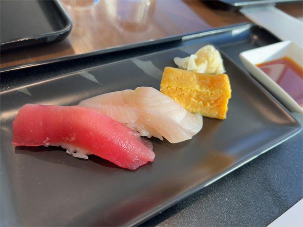| ↑「鮨 鶴亭」のにぎり寿司。ネタは3種類、週替わり。 |