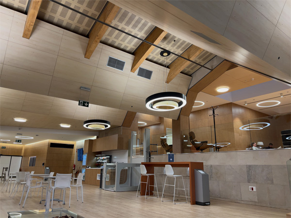 テネリフェ・ノルテ空港のラウンジ。空港のホームページの紹介ではこぢんまりしているように見えたが、実際はとても広くて居心地が良く、テラス席もある(大雨で戸外に出られなかったのが残念)。