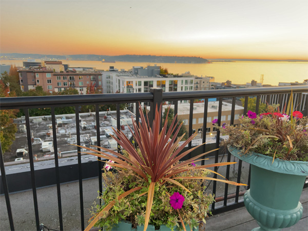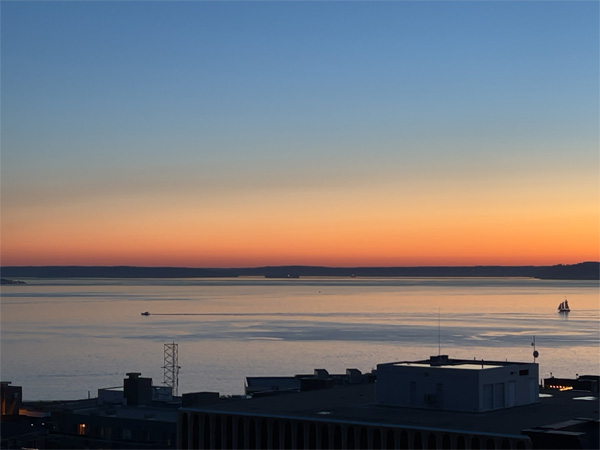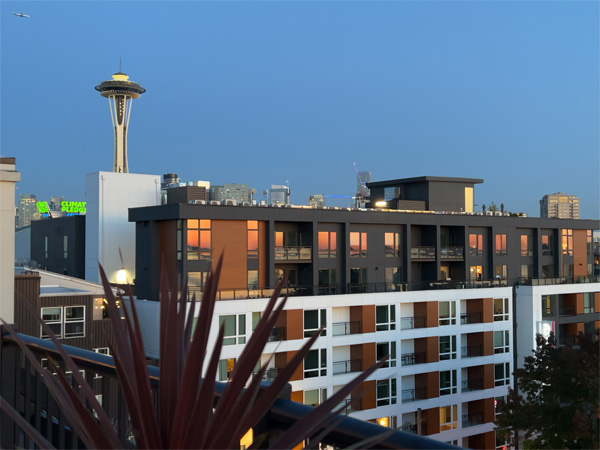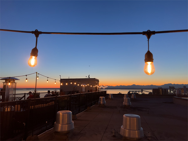 ピーター・ゲイブリエルの公演会場、クライマット・プリッジ・アリーナまで歩いて3分のホテル、メディテレニアン・インに3泊した。屋上が展望デッキになっていて、朝6時から深夜午前0時まで、ほぼ360度、シアトル市街と海の景色を一手に楽しむことができる。