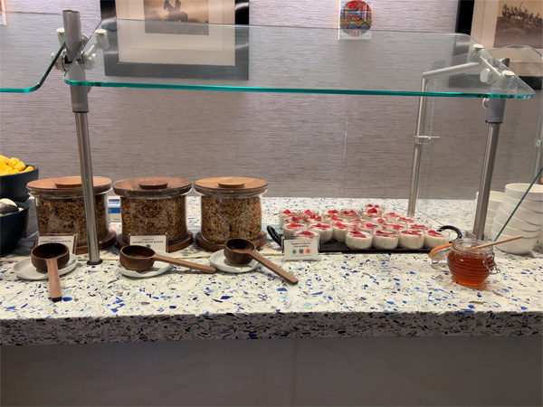 高い天井で開放感いっぱいのラウンジだ。羽田空港のスカイクラブの上質さに驚いたけれど、4年ぶりに訪れたアメリカの空港でもしかり。スカイクラブ全体のグレードがさらにアップしたと感じたのは私だけだろうか。
